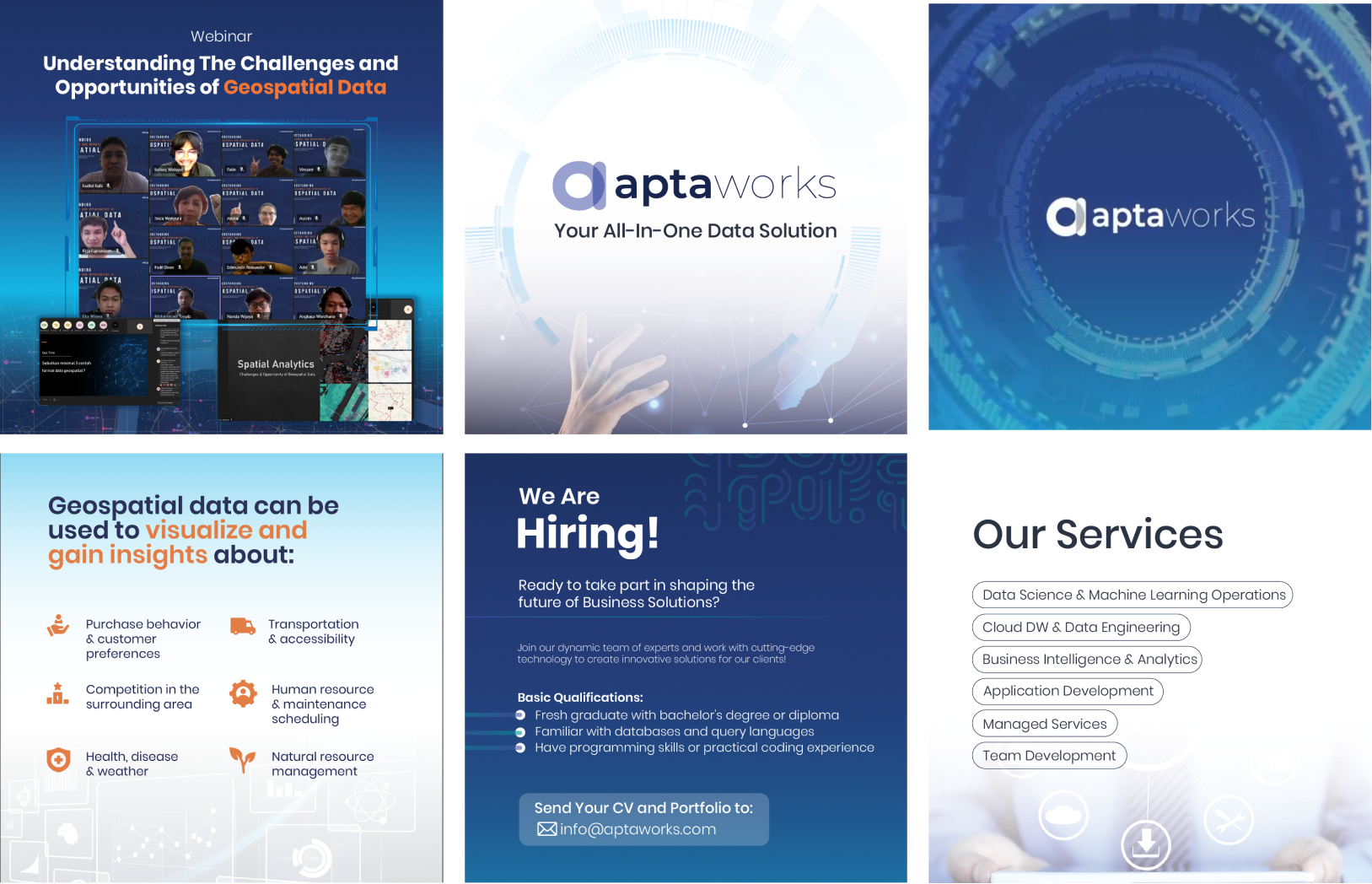 We also develop an integrated SEO and social media strategy to produce informative tech tips and trendy content, aimed at boosting Aptaworks' search engine ranking and increasing discoverability among potential clients.